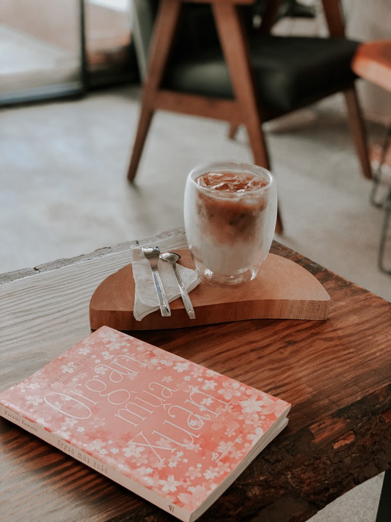 Khi ở tại homestay trên lầu thì Cơ cứ đi xuống dưới uống cafe, ngồi đọc sách và tận hưởng thời gian “không làm gì cả” của mình. Lâu lâu nựng bé cún trắng xoá như tuyết của cô chủ.