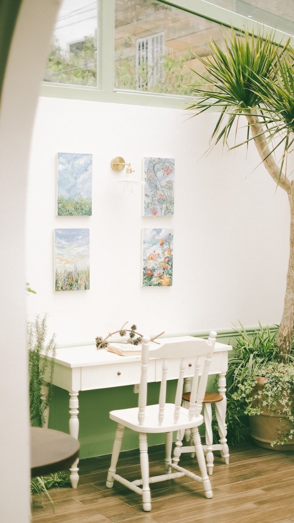 Góc rộng nhất chính là khu vực phòng tranh với rất nhiều tượng, và tranh sơn dầu và nhiều ghế sofa và ghế gỗ để ngồi tạo dáng nha. Bước vào cứ như đang bước vào phim Nevertheless vậy đó các bạn.