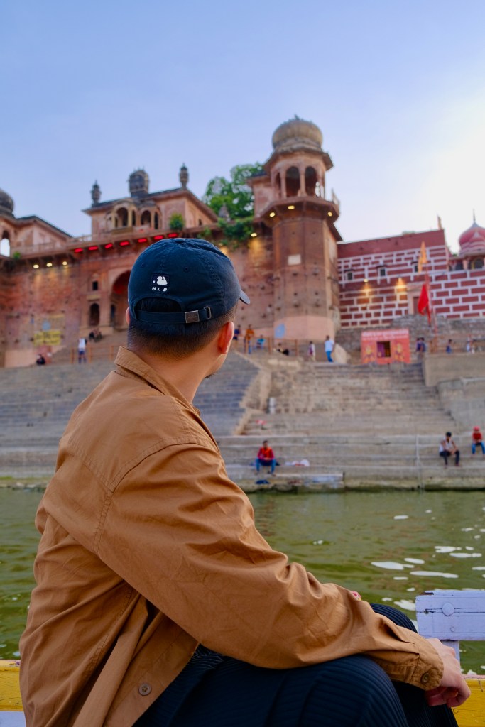 Khách sạn của mình nằm trong một nơi từng là cung điện cũ, nơi này cũ kỹ nhưng nằm gần sông Hằng chỉ cách 20 mét. Thế nên mình đã chọn. Nhưng lưu ý là taxi khi đến trung tâm thành phố sẽ không thể vào gần đến các khu khách sạn gần sông, vì đường vào rất hẹp chỉ đủ cho người đi bộ hoặc xe máy. Nên mình đã đi một đoạn khá dài mới đến được khách sạn dưới cái nắng hơn 40 độ mùa hè ở Ấn.