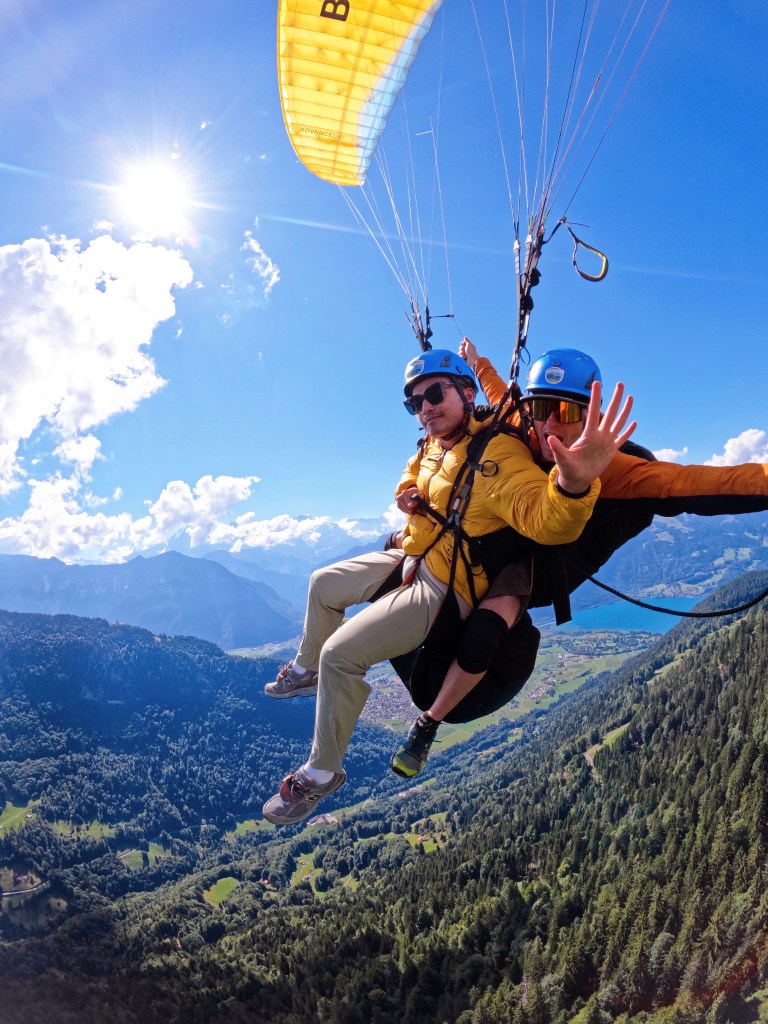 Sau khi chạy 25 bước lấy đà và gió thổi mạnh thật mạnh để đưa mình và anh phi công Anders, người Na Uy, lên cao, mọi cảm giác sợ hãi trước đó biến mất và chỉ còn biết há hốc mồm trước khung cảnh kỳ vĩ của Interlaken.
