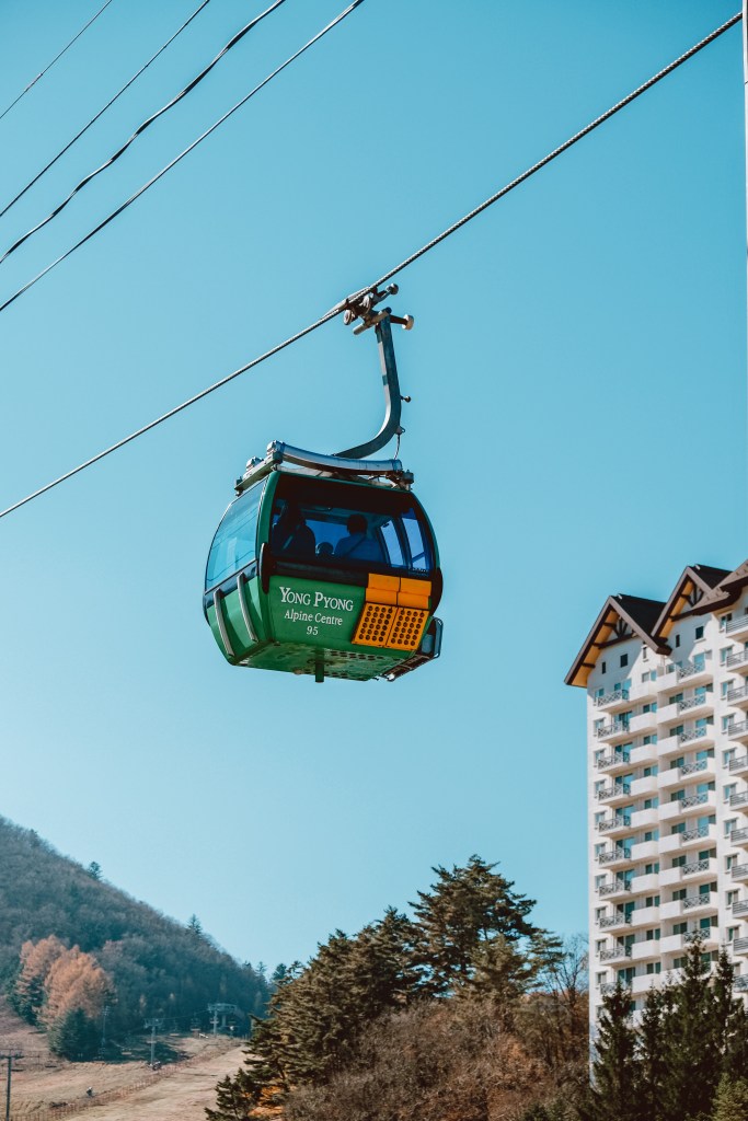 Ở Gangwon, khi chưa vào mùa trượt tuyết thì bạn có thể bắt cáp treo giá 25.000 won khứ hồi cỡ 400 cành để lên đỉnh núi. Tại đó bạn có thể tha hồ ngắm cảnh toàn khu vực Gangwon cực kỳ đẹp với núi, rừng, những cánh đồng gió.
