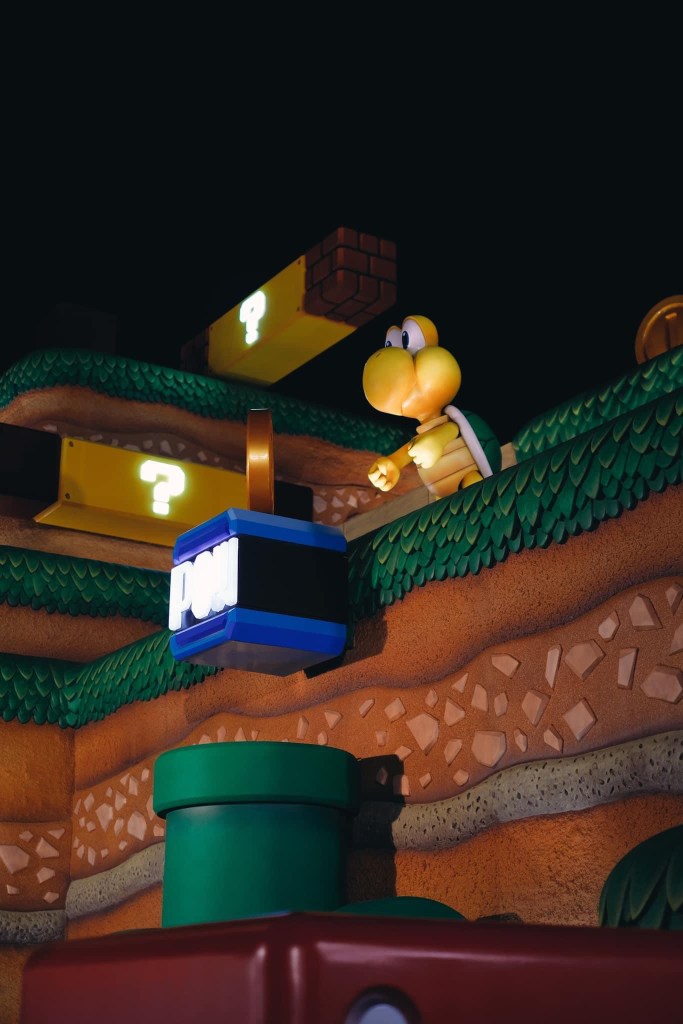 Nintendo World là công viên giải trí lấy cảm hứng từ những nhân vật trong game của Nintendo như Mario, Peach, Yoshi, Bowser. Hẳn những đứa trẻ sinh trong thập niên 90s sẽ từng có lần chơi trên máy N64 những trò chơi đầy pixels.