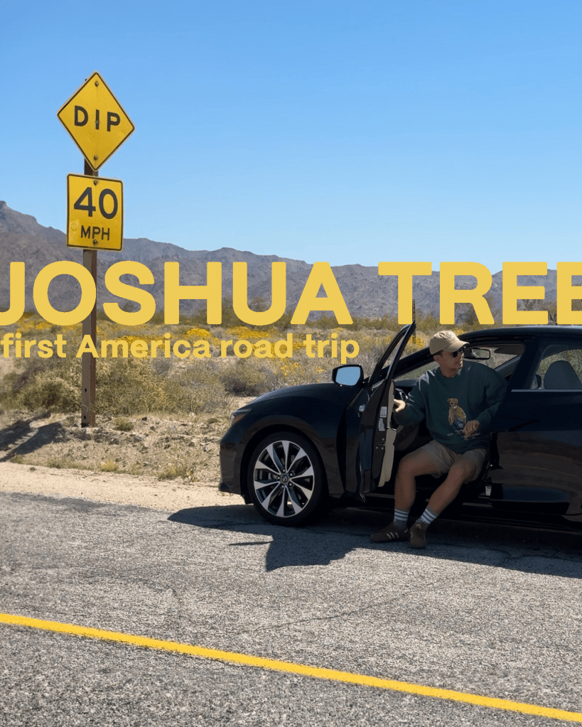Có lẽ quyết định thi lấy bằng lái năm ngoái của tôi là quyết định sáng suốt nhất trong năm. Để rồi năm nay, tôi đổi kịp bằng lái quốc tế để mang theo đến Mỹ. Tôi thật sự không có dự định sẽ có chuyến đi Mỹ bằng xe tự lái, vì ban đầu chỉ tính đi xem Coachella 4 ngày, sau đó đến New York City thì không cần xe hơi. Nhưng khi ở Indio vào ban ngày tôi thấy hơi chán… vì nơi này chỉ toàn sa mạc với sa mạc, những địa điểm vui chơi cách nhau khá xa, gọi xe thì tốn kém và bất tiện vì tài xế thường ở xa. Thế là tôi đi thuê xe, và chuyến road trip bất đắc dĩ này ra đời.