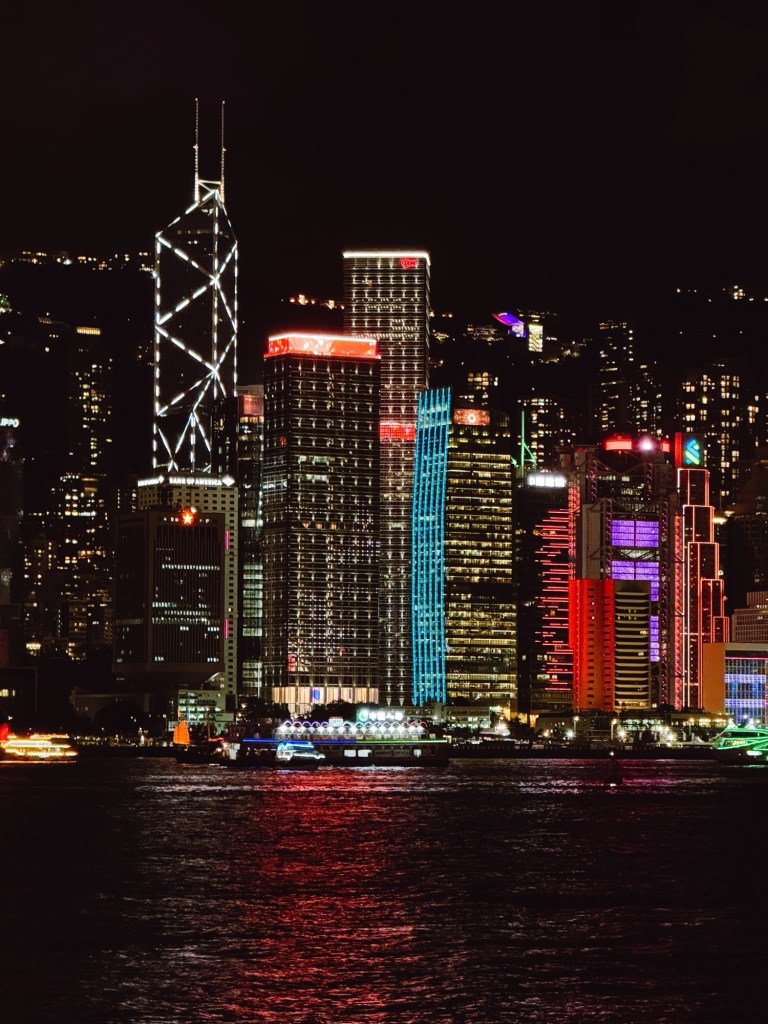 Đêm xuống, mình lại quay về Tsim Sha Tsui như một thói quen cũ, đứng bên bờ sông chờ Symphony of Lights đúng 8 giờ. Lần này, nó không còn khiến mình “wow” như 11 năm trước. Có lẽ đôi mắt này đã thấy đủ nhiều, hoặc vì bản thân đã khác. Nhưng khi nhìn skyline Hong Kong sáng lên, mình bất giác nhớ lại cái cảm xúc tuổi 20 lần đầu được nhìn thấy khung cảnh này — thứ đã khơi nguồn cho hành trình xê dịch suốt bao năm qua.