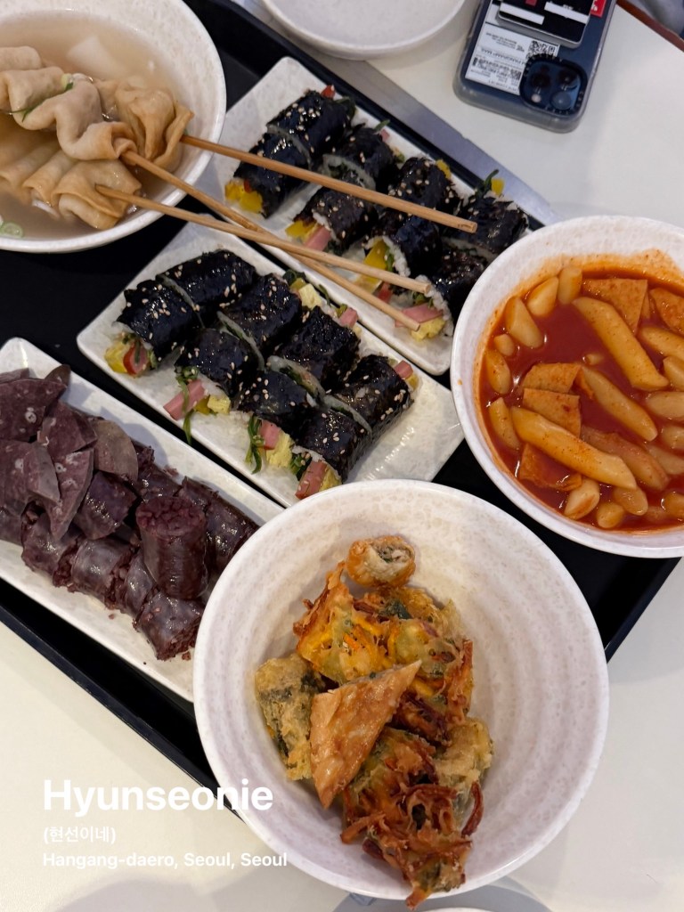 Khi hoàng hôn bắt đầu buông, mình chọn ghé qua Hyunseonie, một quán ăn đường phố nằm trong khu Myeongdong sôi động.